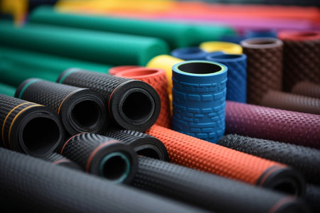 AI Generated. Recycled rubber granules from discarded tires for sports and playground surfaces