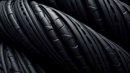 Detailed close-up of rolled roofing material showcasing a textured surface, perfect for industrial and construction-themed projects.