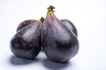 Fresh ripe purple organic figs fruits ready to eat close up isolated on white background
