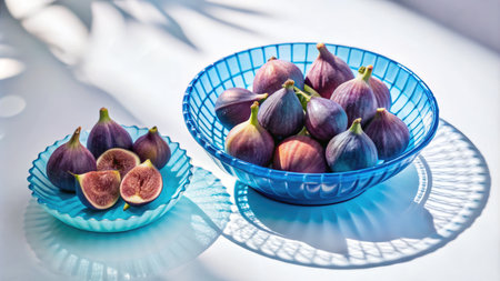 Fresh blue figs displayed in close-up, showcasing their rich color and texture. the vibrant blue hues and delicate patterns create a visually striking image, the natural beauty, texture, and appeal of figs in a culinary or nature context. Generative AI