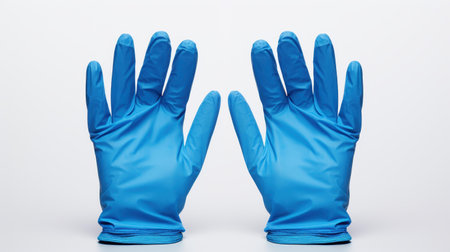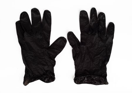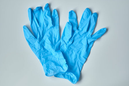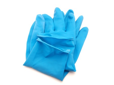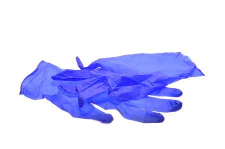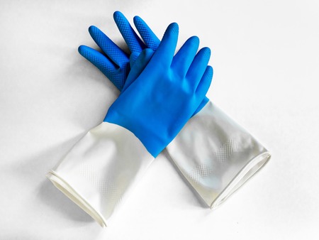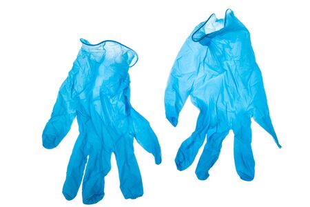 pair of nitrile blue gloves isolated on white background. Closeup top view. housework concept. General or regular cleanup. Commercial cleaning company. household and cleaning gloves
