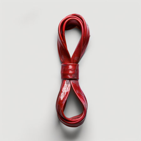 A vibrant red twisted ribbon shape isolated on a light gray background, perfect for creative projects, gift wrapping, and decorative uses at festive occasions.