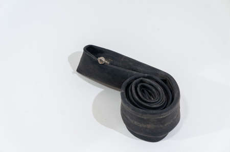 Old deflated Rubber Tire Tube for Bicycling with valve