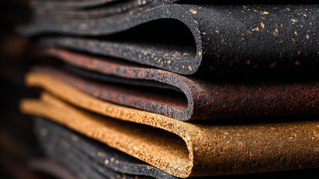 industrial rubber mats folded in pile, strong texture and contrast. Generative