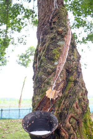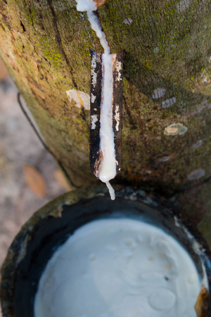 Milky Latex extracted from rubber tree , Source of natural rubber tree in thailand location