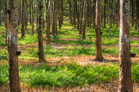 Rubber tree plantation harvesting in a organic farm.