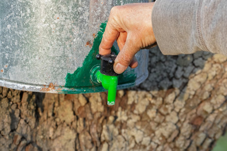 Collection of birch sap in spring