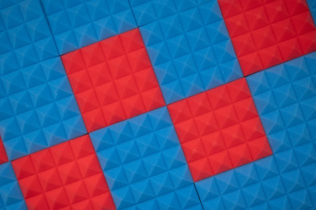 Acoustic foam panel background with red and blue lighting. music background