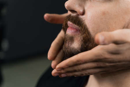 Fixing the shape of the beard with wax. The result of a haircut in a barbershop