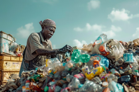 African man sorting garbage in a landfill. Recycling concept.