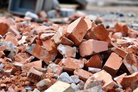 a heap of broken bricks on construction site, created with generative ai