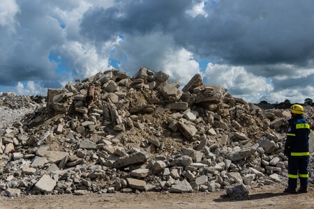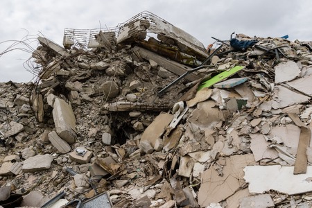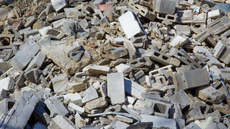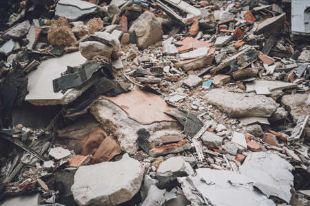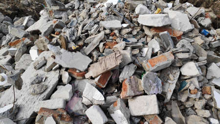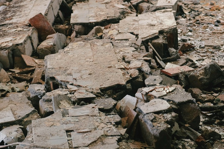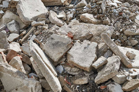 concrete rubble from destroyed building for construcion material recycling