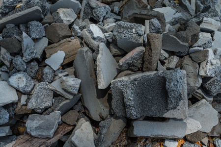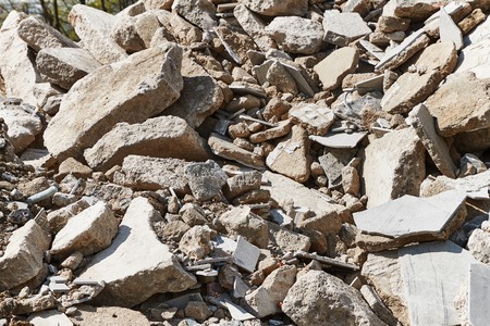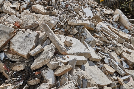 Pile of concrete rubble from demolished building ruil to recycle construction material