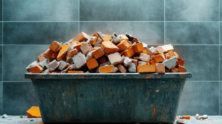 Bricks in a dumpster near a construction site, home renovation