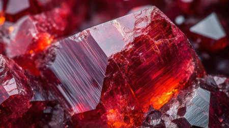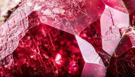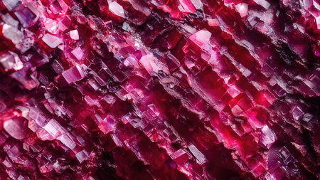 Macro shot of natural red ruby gem or mineral texture background, organic stones patterns and colors. Abstract geological ornaments unique structures, AI generated image