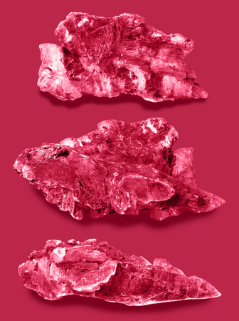 Natural stones in viva magenta color, which is the color of the year 2023. The picture contains work path.