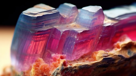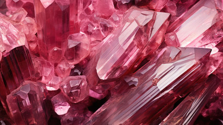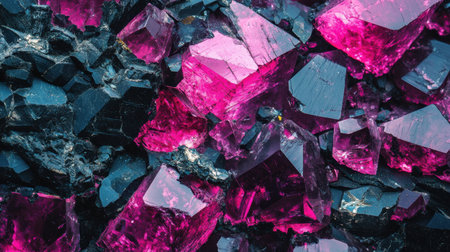 Explore a breathtaking display of pink and black mineral crystals showcasing nature's remarkable beauty. This striking close-up highlights the vibrant colors and intricate textures found in geological gems. Perfect for artistic, educational, or decorative purposes.