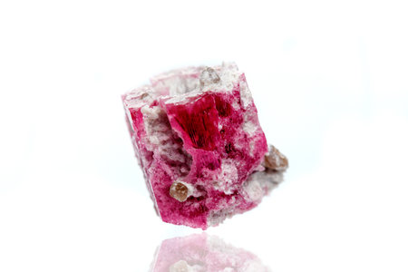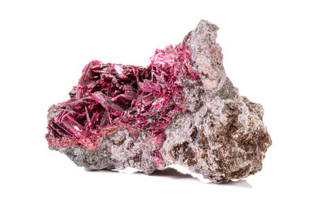 Closeup Photo of Crimson Erythrite Mineral Gemstone Isolated on White Background