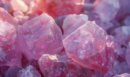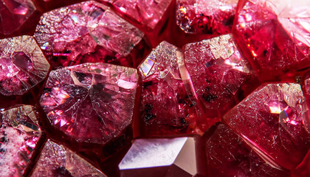 This close-up photograph showcases beautiful pink gems that reflect light and exhibit a glossy texture, highlighting intricate facets against a soft focus background.