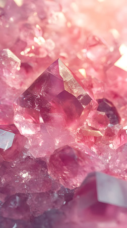 A close-up of sparkling pink crystals, showcasing their intricate facets and vibrant color.
