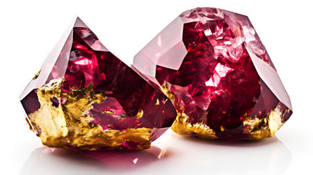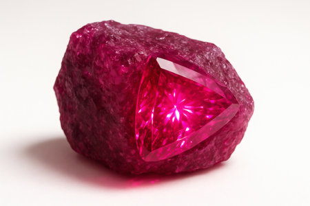 Bright Pink Spinel Raw Stone with Glowing Slice Isolated on White Background Luxury Gemstone