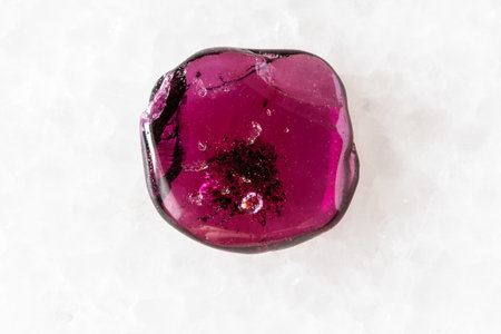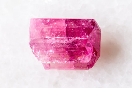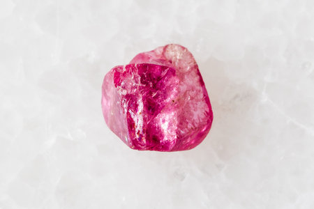 sample of rough pink spinel mineral on white marble background close up from Vietnam