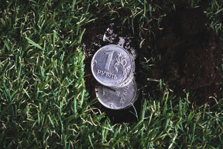 The ruble fell in value. currency depreciation. crisis in the country. Prohibition of payments and transfers. Hard times for the monetary unit. high quality photo