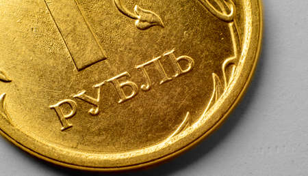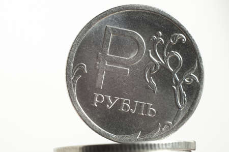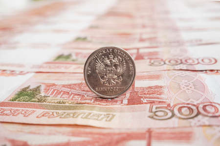 Business concept of rich, wealth, profit and finance. Background Russian money rubles close-up. Coin worth one ruble worth on the edge