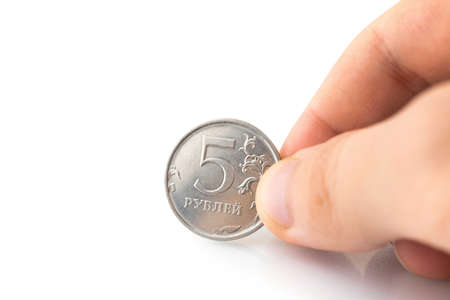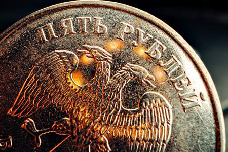 5 Ruble Coin Obverse Inflation Concept Stagflation Value Drop Plunge Russia Flag Macro