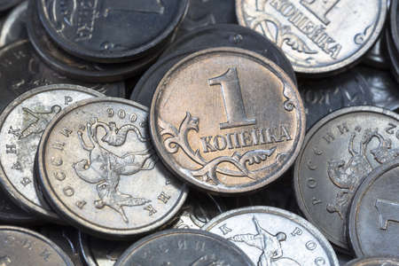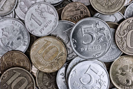 Russian coins, rubles. Background and texture of Russian money. high quality photo