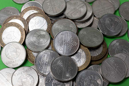 A bunch of Belarusian coins. The concept of money, currency. Savings