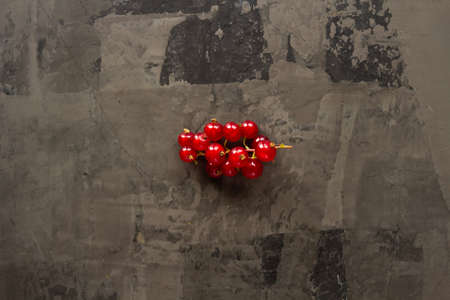 Red currants scattered over a gray texture background. High quality photo