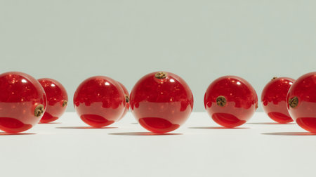 A vibrant arrangement of fresh red currants captures the essence of summer. The bright color and delicate shadows create a stunning visual for culinary inspiration.