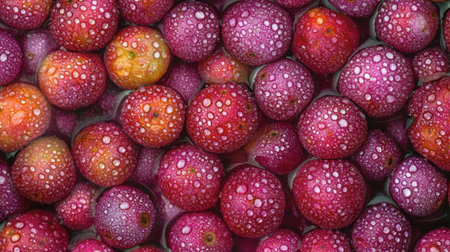 A detailed close-up of fresh plums, covered in water droplets, showcasing vibrant colors and natural textures. Ideal for food-related themes and healthy eating.
