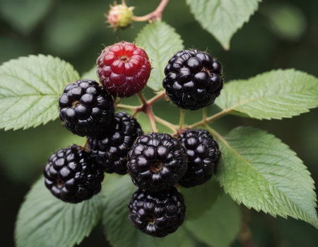 Black raspberries and blackberries are rich in vitamins. Juicy and ripe berries are ideal for snacking or adding to recipes. A great option for vegetarians looking for a tasty and nutritious snack.