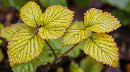 This image showcases a close-up view of lush green leaves featuring intricate textures and patterns, highlighting the beauty of nature in a serene garden setting.