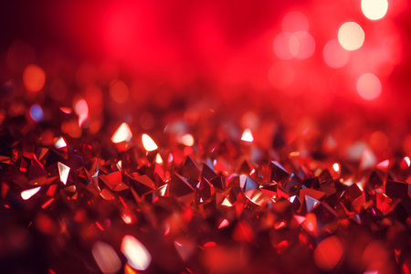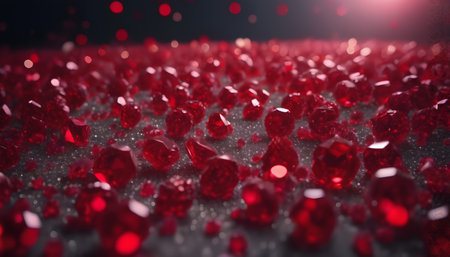This close-up image showcases mesmerizing red gems with vibrant colors and intricate textures. The stunning sparkle and reflections create a luxurious and artistic atmosphere.