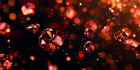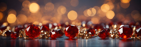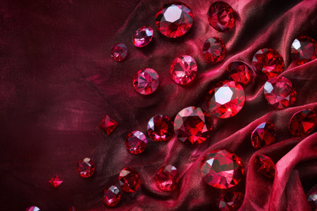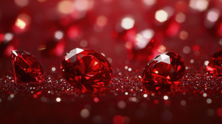 This captivating close-up image showcases brilliant red gemstones sparkling against a shimmering background. The vibrant hues and intricate details highlight the beauty and elegance of these precious stones, making it perfect for themes of luxury, celebration, and artistry.