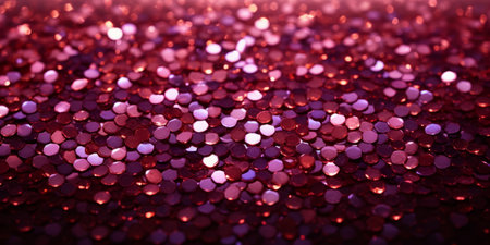 Glitter texture of red sparkles laying on the table. Many red sequins for dress and decorations. High quality illustration