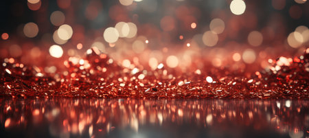 Red glitter sparkles in the light, creating a beautiful, festive backdrop