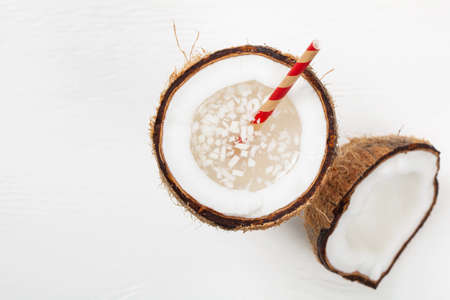 Diet drink - coconut milk with srtaw top view