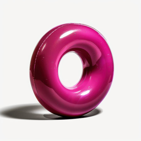 This vibrant pink doughnut shape object showcases a glossy finish, casting a playful shadow on a minimalist background, perfect for design projects and creative use.