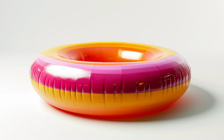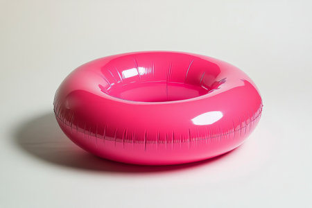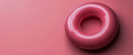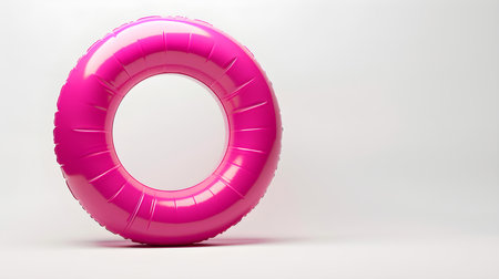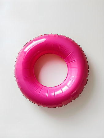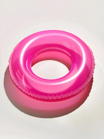 A vibrant pink inflatable ring sits on a smooth, light background. Perfect for summertime pool parties, it adds excitement to water activities and relaxation.