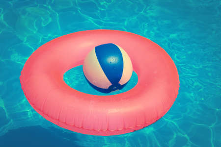 Swimming ring floating on the water in the pool. The concept of summer holidays