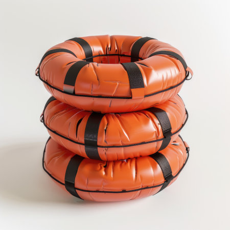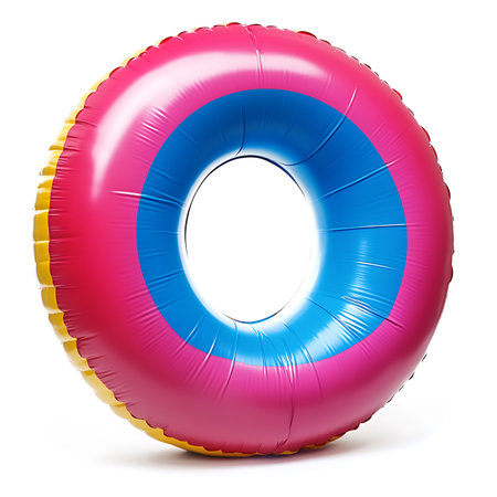 Inflatable pink ring and two white rings on a vibrant blue background, perfect for summer themed projects. Ai generated image