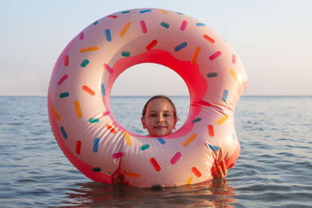 Swimming Ring. Children Baby Swimming Lap. Inflatable swim ring on sand beach