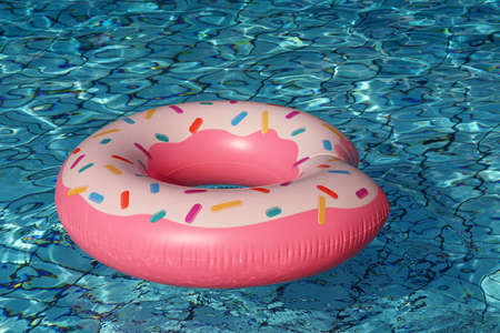 Inflatable ring in donut shape in a clear water of swimming pool. Beach vacation, relax and leisure concept