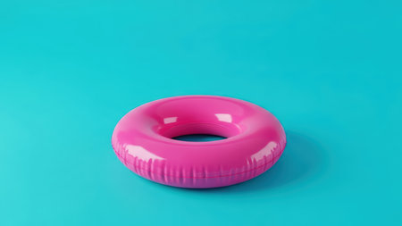 AI Generated. Pink Inflatable Pool Ring on Turquoise Background