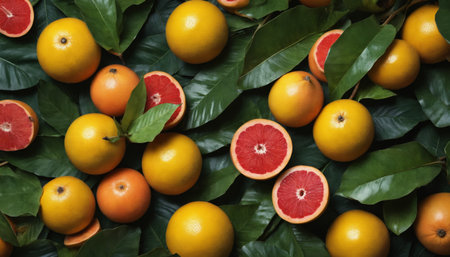 Fresh Ruby Red Grapefruit Slices With Greenery Showcasing Vibrant Color