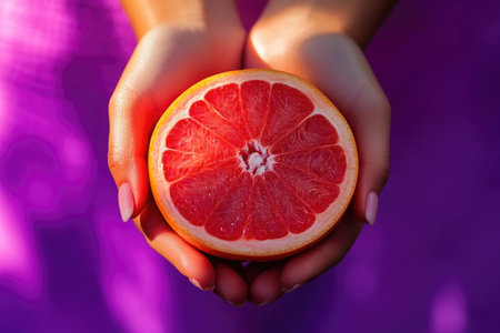 Detailed View of Grapefruit Half Held with Texture and Sunshine Effects